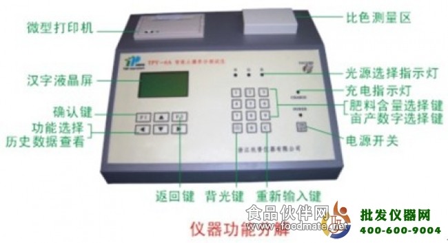 | TPY-6A | 除了具备TPY-6型的所有功能外,仪器内存70种农作物生长发育所需养分量代替施肥配方软件,可根据用户需要输出指导施肥量并打印出来,是一款智能的土壤分析仪器。 |